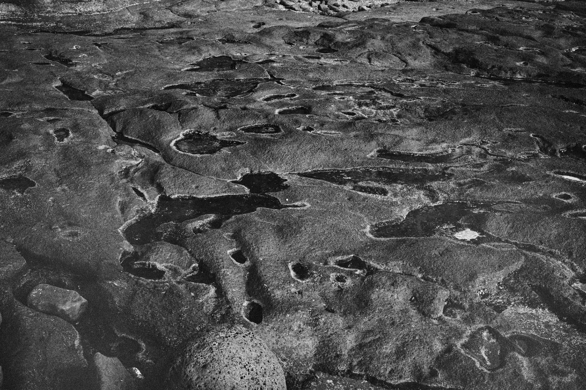 Screentones composed of dots employ a gathering of points in various sizes from pale gray to deep black to articulate light and shadow. These dots function as specific effects or backgrounds, while the details of minute particles generate form through contrast and construct the monochromatic photograph.
