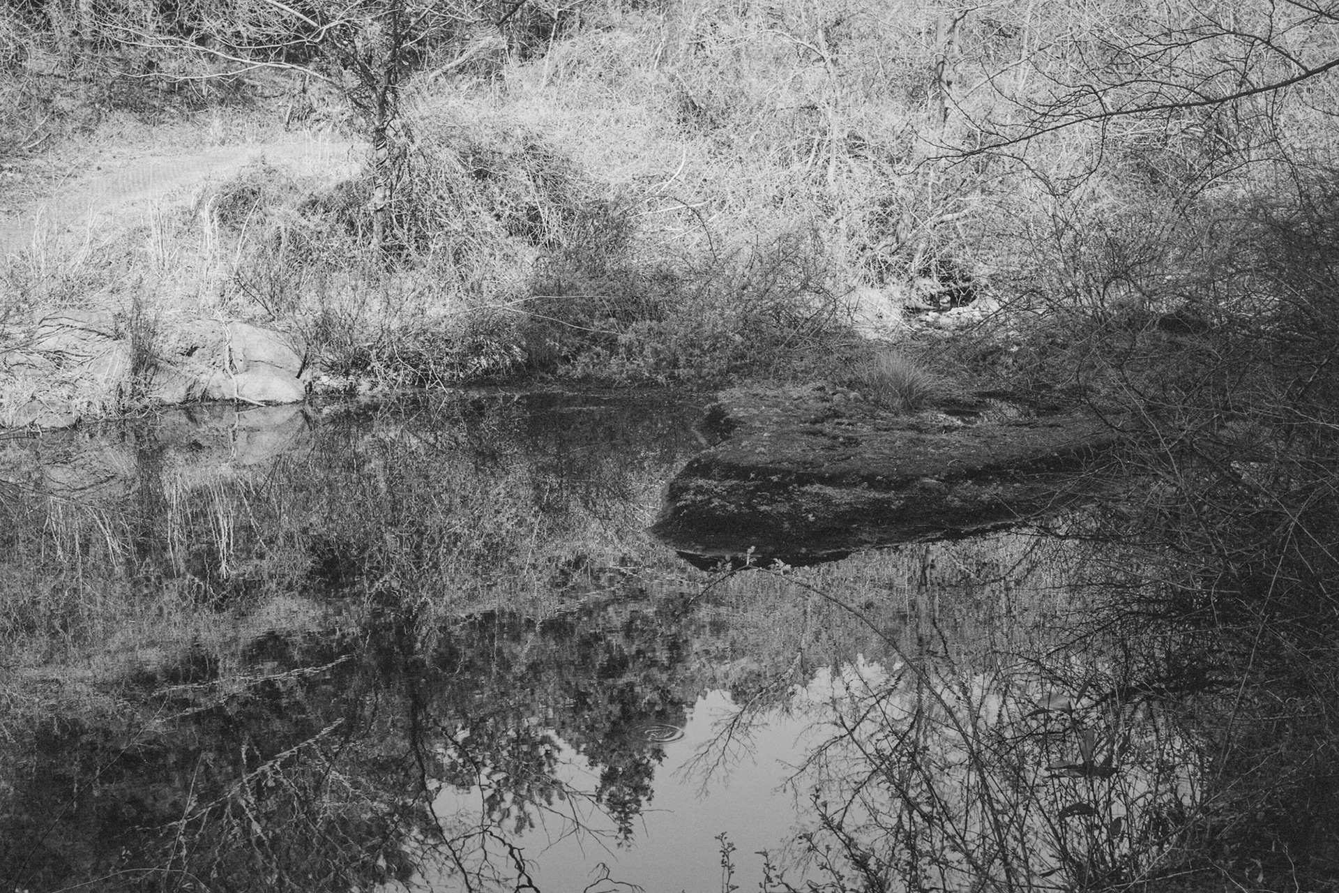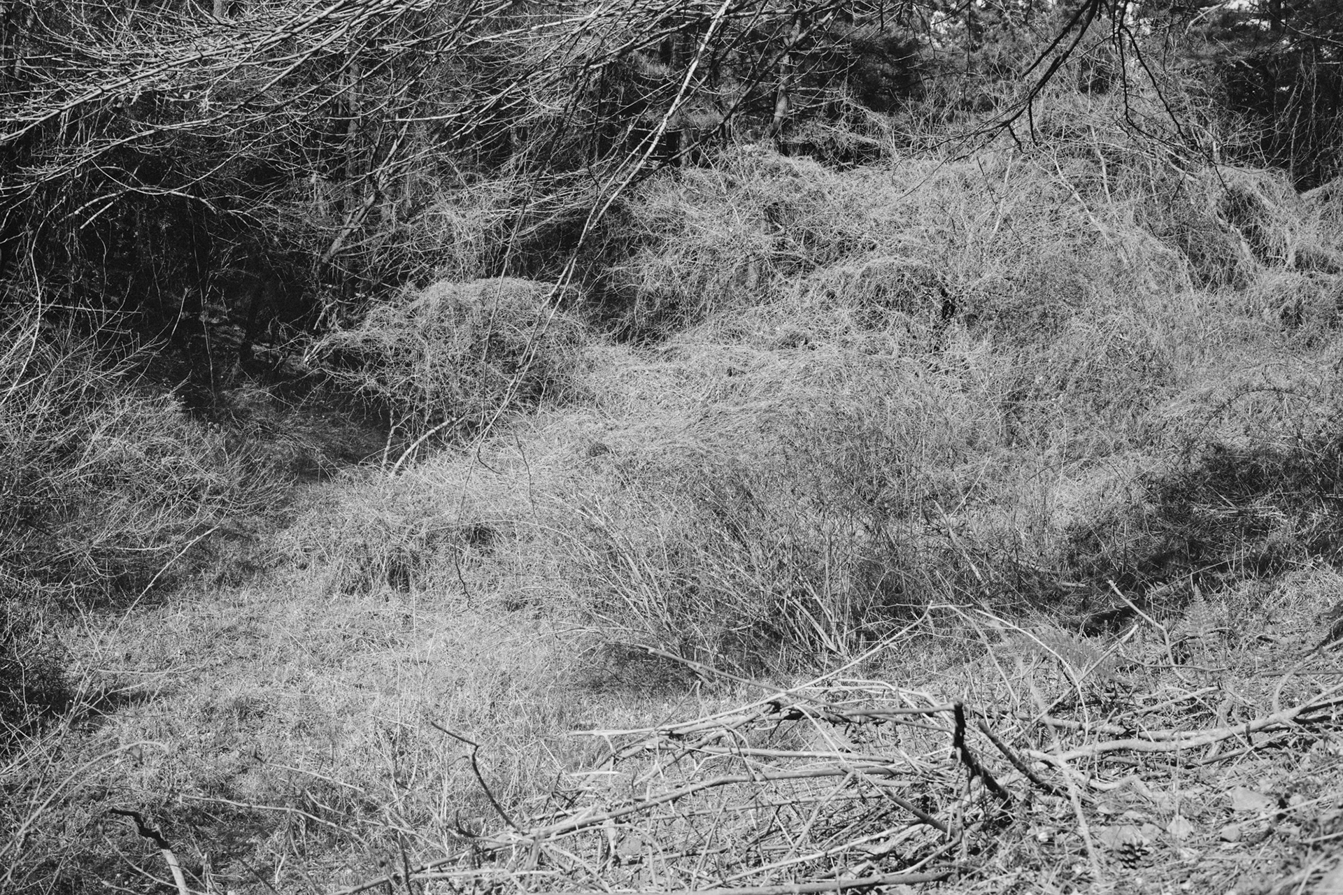 The resulting images occasionally recede into the background or approach as a singular, connected scene. Whether nature, formed by countless particles, remains a mere backdrop or is embraced as a subject depends entirely on the perspective of the observer.